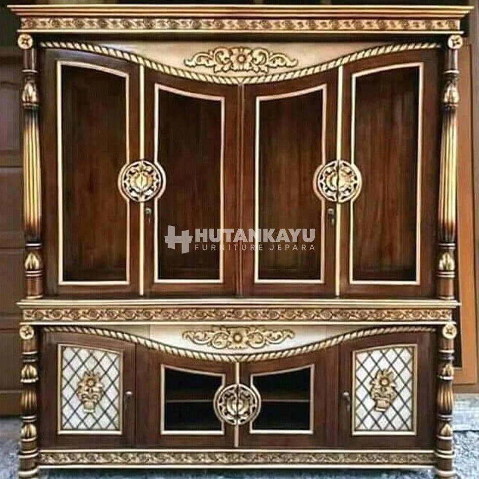 Lemari Pajangan Hias Ukir Klasik Mewah Jati